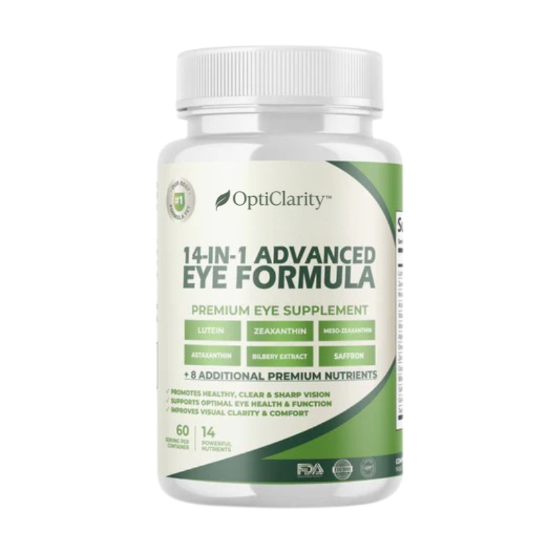 Ontdek de baanbrekende formule die door duizenden mensen wordt vertrouwd voor volledige oogbescherming. OptiClarity™ combineert luteïne, zeaxanthine, bosbes en zink om de gezondheid van het netvlies te ondersteunen, de focus te verbeteren en een kristalhelder zicht te behouden – zonder medicijnen, laserbehandelingen of bijwerkingen.